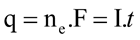 , trong đó: q là điện lượng là số mol electron đi qua dây dẫn, I là cường độ dòng điện (A), t là thời gian điện phân (giây), F là hằng số Faraday ().