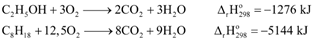 Cho phương trình nhiệt hóa học của phản ứng đốt cháy ethanol và octane: