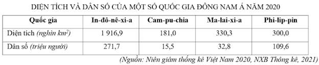 Theo bảng số liệu, cho biết quốc gia nào sau đây có mật độ dân số cao nhất?