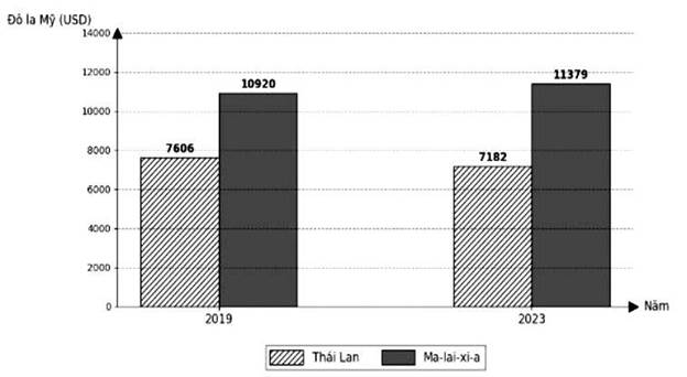 GDP/người của Thái Lan và Malaixia năm 2019 và năm 2023