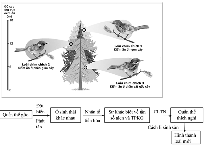 Từ hình trên ta có sơ đồ sau: Quần thể gốc Ổ sinh thái khác nhau