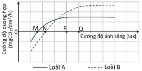 a) M và N lần lượt là điểm bù ánh sáng của loài A và loài B.